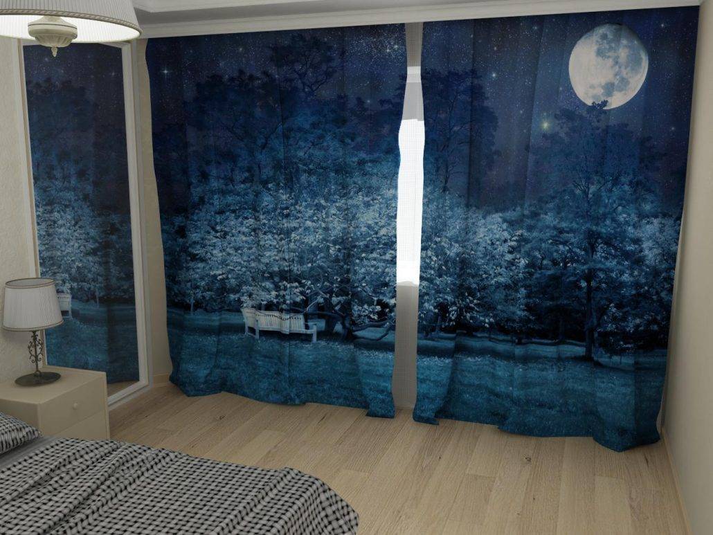 - Фотопечать – новое направление оформления штор, благодаря которому на основу наносятся реалистичные изображения. Такие шторы пользуются повышенной популярностью, невзирая даже на их высокую стоимость. Отлично подходят при оформлении спален, интерьер которых выполнен в современном стиле.