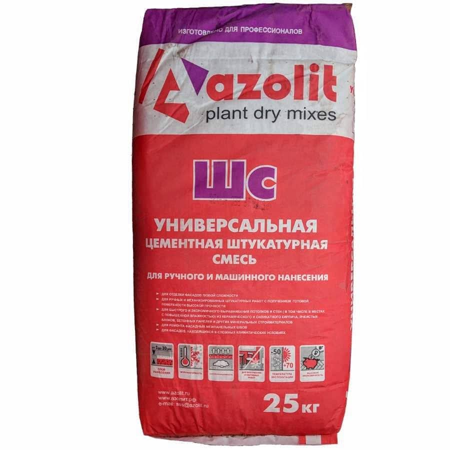 Влагостойкая цементная штукатурка «Азолит-ВШ» отличается высокой пластичностью, износостойкостью, она подходит для отделки разных поверхностей: бетона, кирпича, цементно-стружечных плит. Раствор схватывается уже за 3 часа, набирает прочность за 3 суток. Допустимая толщина слоя не более 20 мм.