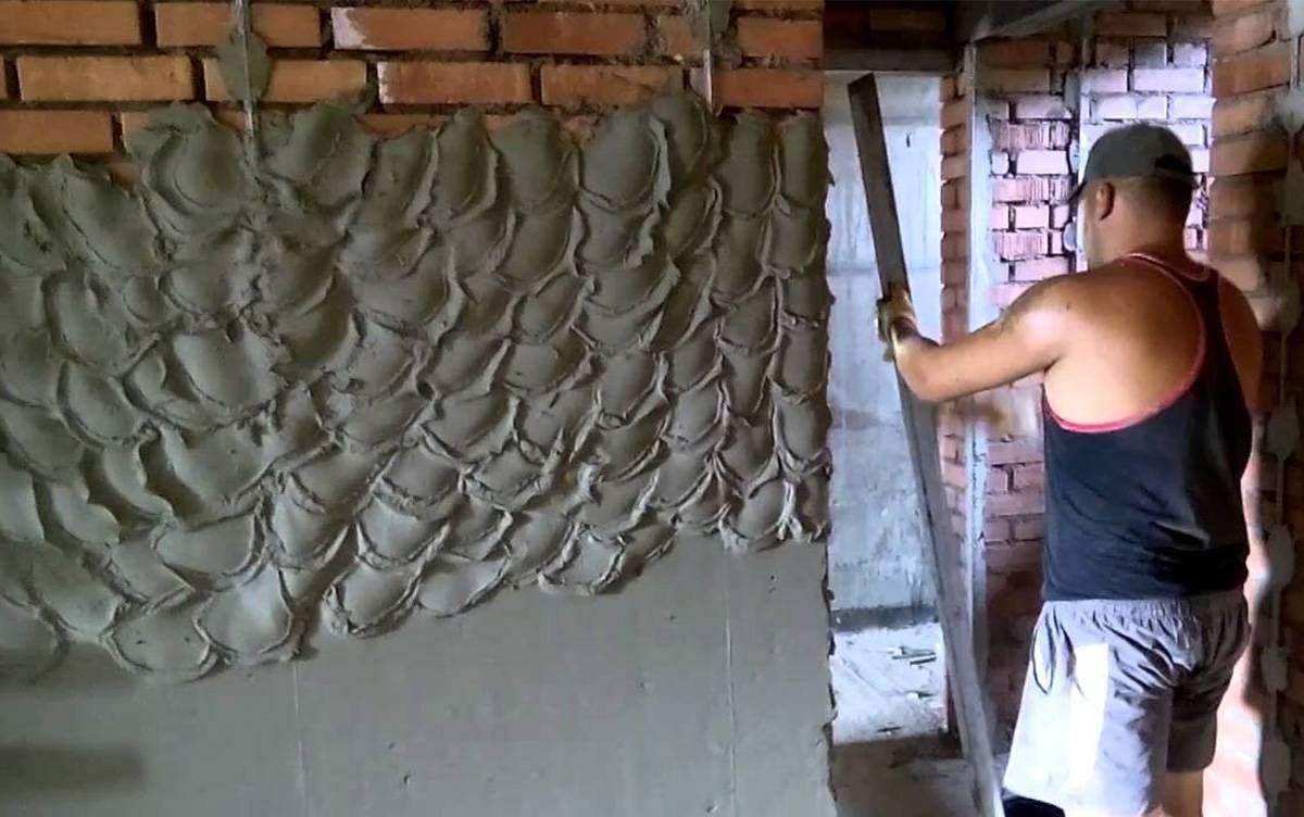 Раствор затворяют густым, с уменьшением содержания воды до 10%. Штукатурку набрасывают на стены кельмой или мастерком. Излишки снимают правилом. Образующиеся пустоты снова заполняют раствором и заглаживают инструментом. Однослойное покрытие делают толщиной до 50 мм.