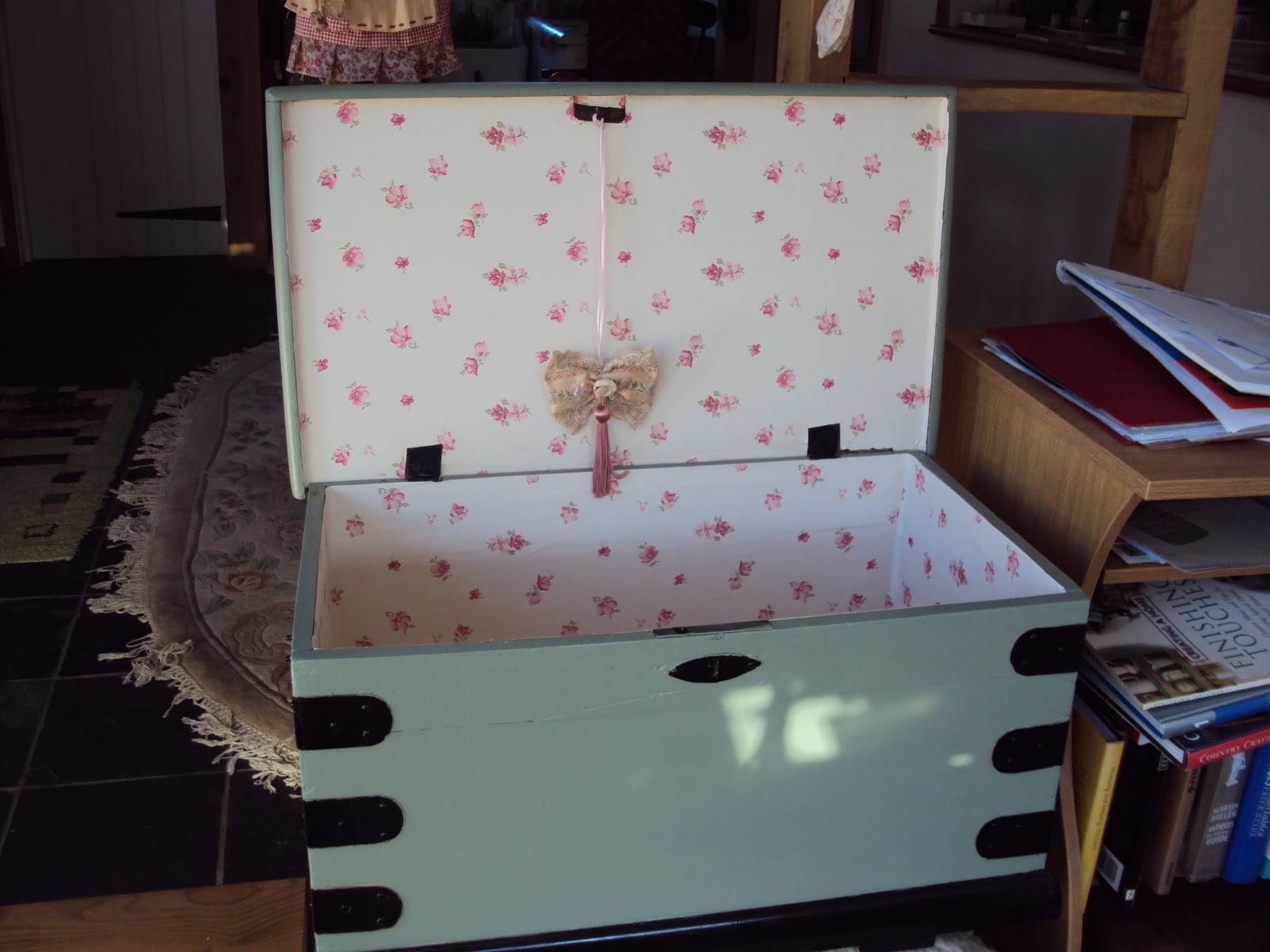 Желая получить 3D эффект или винтажный вариант оформления необходимо использовать соответствующие растворы и материалы. Лучше будет выделяться рисунок, если сундук покрасить, а не подчёркивать текстуру древесины.