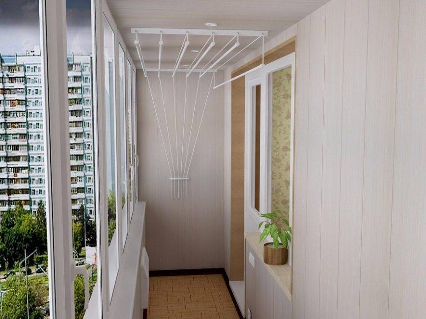 Расположение сушилки для белья на балконе позволяет защитить одежду от попадания пыли с улицы
