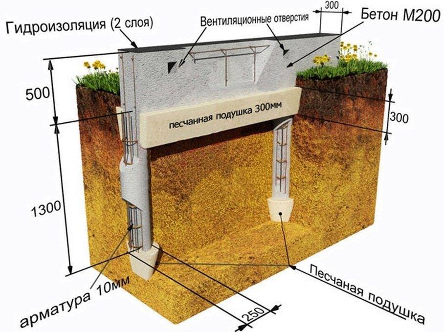 Ленточный фундамент на сваях