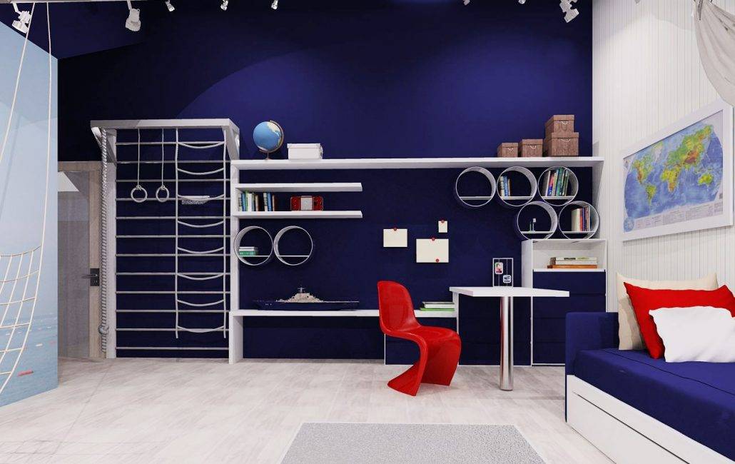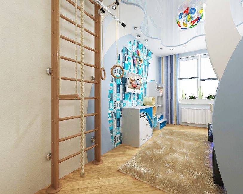 Модели для детей могут совмещаться с кроватью или шкафом, чтобы сэкономить пространство, главное – уделить внимание безопасности и прочности креплений
