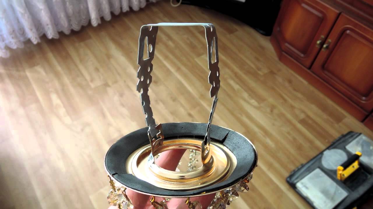 Убедившись в том, что все верно, закрепите светильник на платформе пружинами. На рисунке ниже вы видите схему крепления точечного светильника GX53.