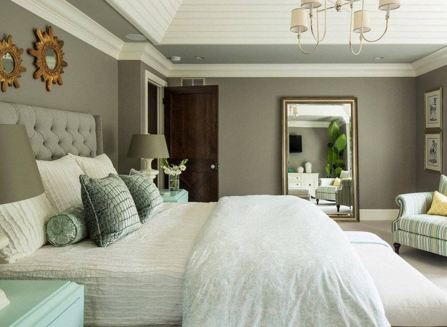 - зеленый — цвет финансового благополучия, однако использование данного цвета в спальне не рекомендуется, так как он всегда клонит в сон — из-за этого цвета Вы не захотите покидать спальню. С зеленым цветом стен сочетание серого пола создаст ощущение покоя и умиротворения;