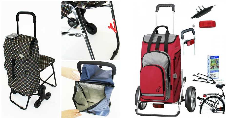 Особые виды сумки-тележки: с откидным стульчиком и для велосипедов