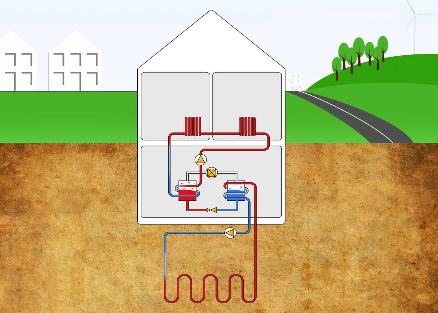 Система геотермального отопления состоит из двух контуров. Внутренний контур – это обычное водяное отопление с трубами, отопительными радиаторами и другими его элементами. Внешний контур представляет собой теплообменник, в котором циркулирует вода или антифриз в качестве теплоносителя отопления.