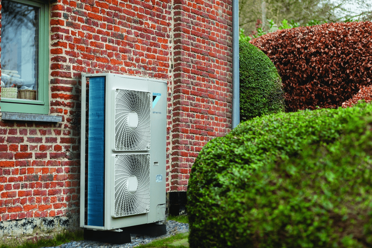 Моноблок, размером со стиральную машину, гармонично размещается у внешней стены вашего дома и волшебным образом преобразует холодный наружный воздух в горячую воду и отопление.