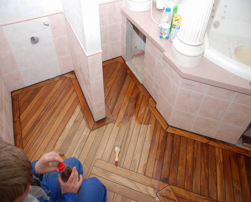 Важно отметить, что на протяжении многих веков именно древесину использовали для строительства судов, поэтому нет смысла говорить о том, что делать пол в помещении с повышенной влажностью из нее нельзя. Во многом долговечность инновационного напольного покрытия в дальнейшем будет зависеть от того, какой породы древесину вы будете использовать. Разумеется, важно выбрать именно ту, которая может подолгу воздействовать повышенной влажности