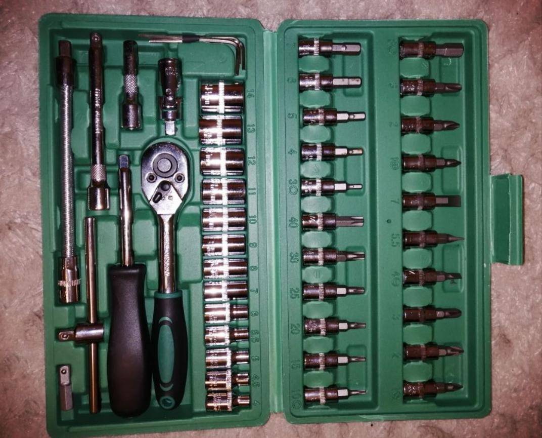 Все основные инструменты для ремонта автомобиля – 46 штук, собраны в одном наборе, предлагающемся всего за 1 334 рубля. Стоит иметь в виду, что они достаточно миниатюрные, то есть набор предназначен для мелких работ. Так, в комплект входят три шестигранных ключа: первый на 1,5 мм, второй на 2, и третий на 2,5.