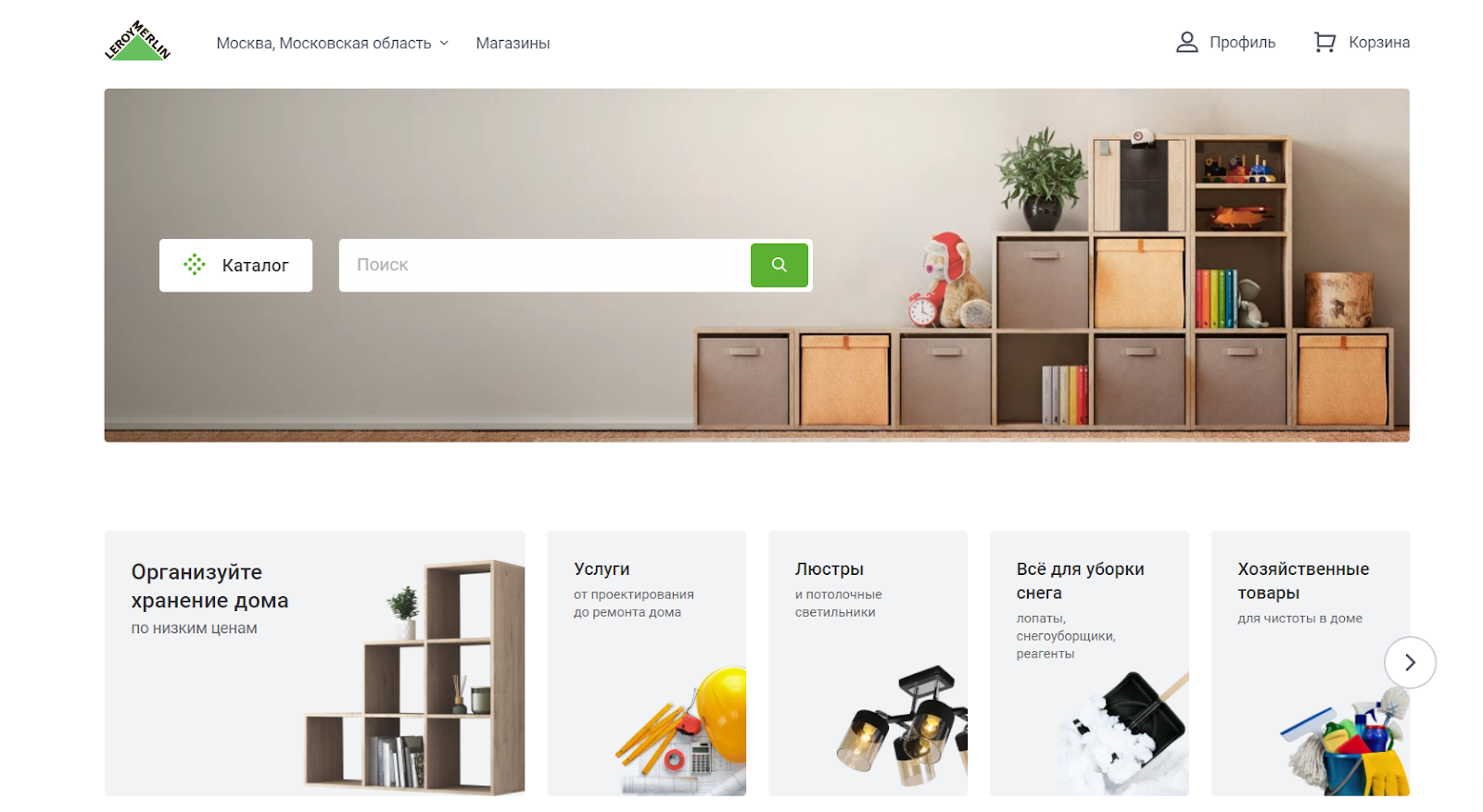 «Леруа Мерлен» предлагает широкий ассортимент оборудования для ремонта, строительных и отделочных материалов, товаров для дома и сада. На сайте компании клиент может приобрести сразу все необходимое для строительства, украшения и обустройства жилплощади с доставкой в любой регион страны.