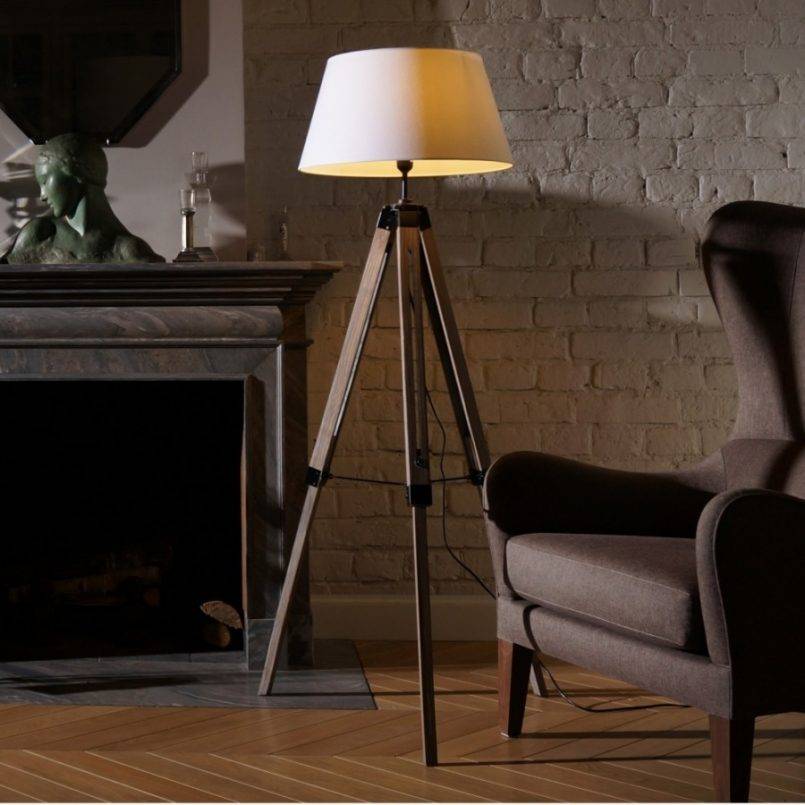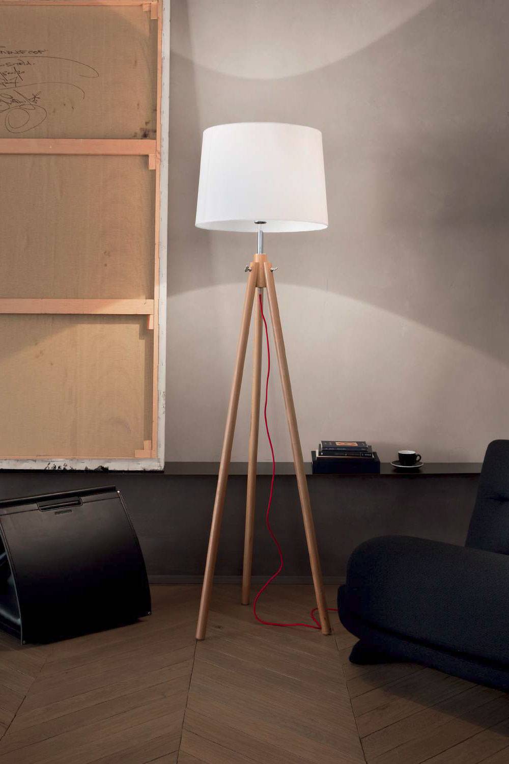 После патрон с абажуром закрепить к проводу, поставить на стойку. Напольный торшер готов, осталось подобрать тип и интенсивность освещения.