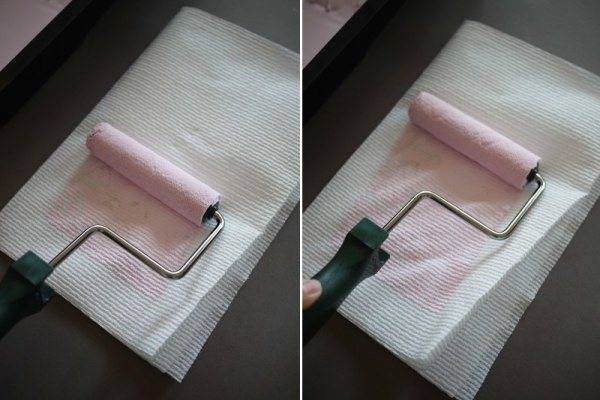При использовании валика, лучше лишний раз пройтись по стене, слегка обмокнув и отжав инструмент, чем потом пытаться удалить лишнюю краску, тем самым испортив внешний вид.