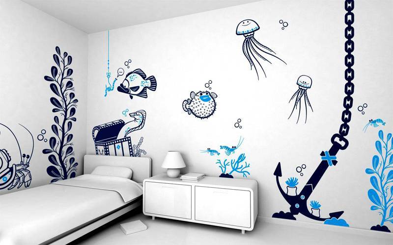 Это под силу каждому. Чтобы расписать стены, не нужно быть профессиональным художником. Можно приобрести готовые трафареты (которых тоже огромное количество) и сделать рисунок по готовому шаблону.