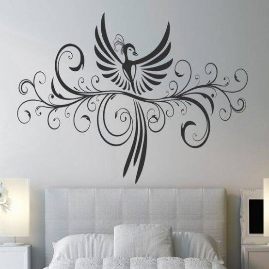 Даже люди, не владеющие профессией дизайнера, способны найти самое выгодное место для трафарета. Например, хорошо подойдёт спальня. Если большая кровать стоит у стены, над ней очень удачно будут смотреться ветка сакуры, цветы или фантазийные разноцветные узоры. Почему не нанести трафарет и на полоток, чтобы перед сном любоваться на чудесный сад, например? Детская — в этой комнате не действуют стандартные правила декора, можно дать полную волю фантазии. Изображения любимых героев из мультфильмов понравятся как мальчикам, так и девочкам.