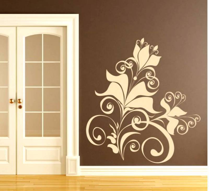 При выборе рисунка чаще всего останавливаются на цветочных композициях, что связано с универсальностью данного изображения. Цветной орнамент отлично смотрится в условиях дома и офиса, а для окрашивания подходят различные цветовые решения. Трафареты цветов на стену легко можно сделать своими руками. Этот орнамент лучше всего для пробы сил новичков.