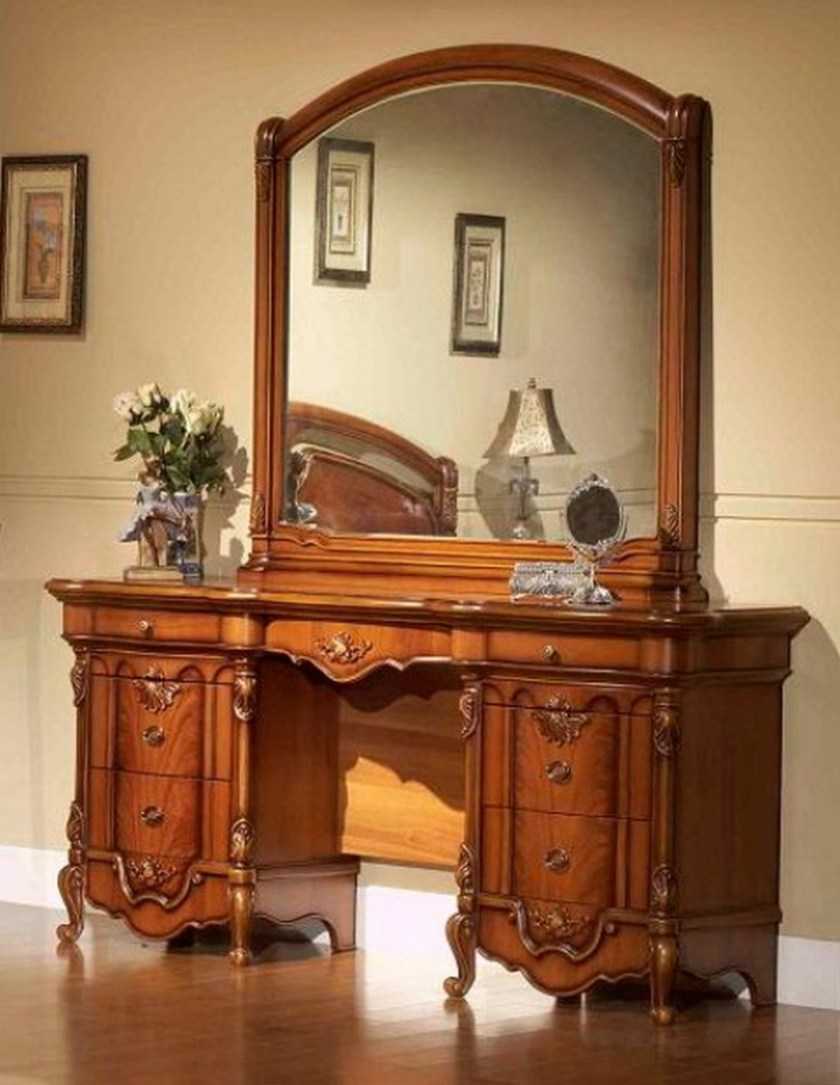 В то же время современный дизайн спальни может дополнить роскошная конструкция с отделкой из кожи. Для классического интерьера лучше подобрать дорогой трельяж из натурального дерева. Он придаст комнате особую респектабельность.