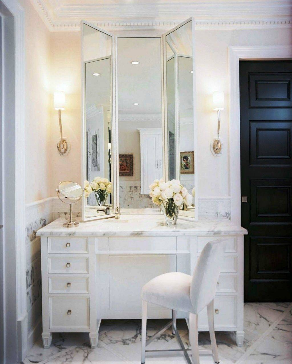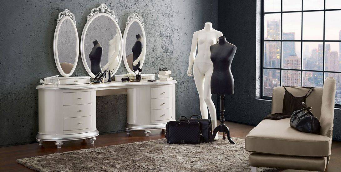 Эти, казалось бы простые предметы интерьера несут огромный функционал. Зеркала помогают не только оценить свой внешний вид, но и служат отражающей поверхностью в процессе сборов куда-либо. Небольшие выдвижные ящички вместят огромное количество пузырьков и флакончиков с косметикой и кремами, парфюмерию и бижутерию. А тройное зеркало трельяжа позволит вам рассмотреть себя под любым ракурсом.