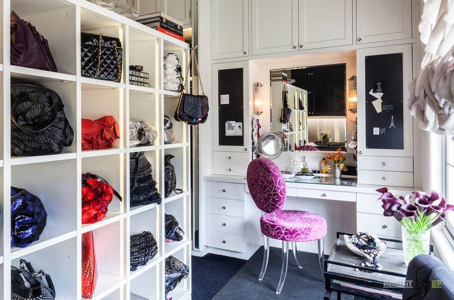 Если размеры квартиры или дома позволяют оборудовать гардеробную комнату, то такой элемент, как трельяж – обязательно должен в ней присутствовать. Подбирать его стоит исходя из общей стилистики и размера комнаты.