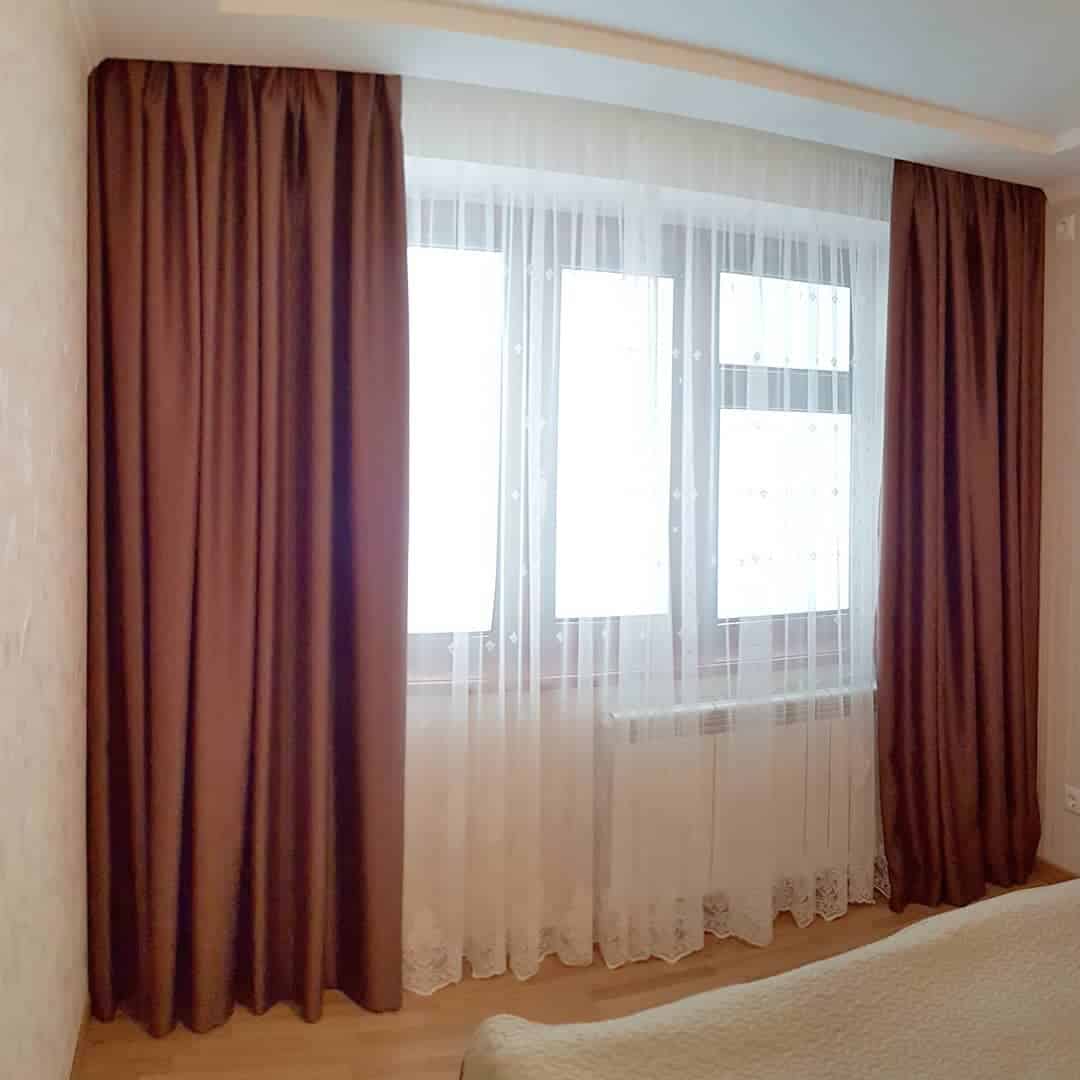 В таком случае красивый тюль необходимо покупать вместе с портьерами. Как правило, гардина на несколько тонов светлее основного цвета штор. Также большинство хозяек выбирают простые белые варианты, либо изысканные: тюль-сетку, гардину со сложной вышивкой, нитяную гардину.