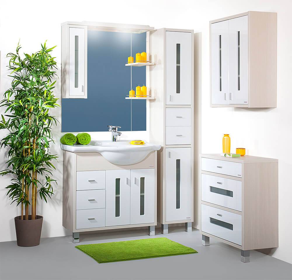 В силу того, что зачастую наши санузлы имеют небольшие габариты, следует отметить, что комплект мебели для ванной выбирается строго индивидуально, и в большинстве случаев может состоять из двух – трех единиц мебели.