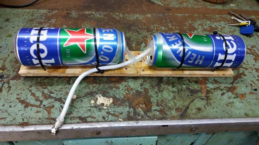 - Не менее двух банок (пива или газированных напитков);