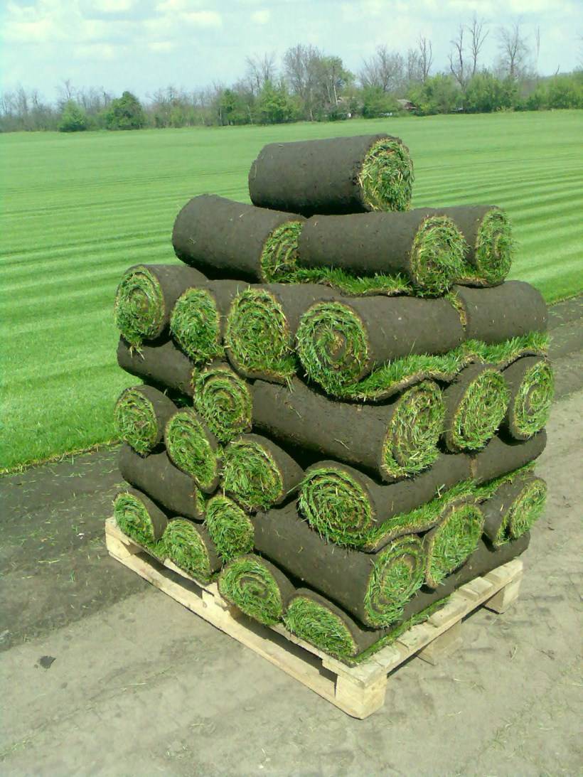 Выращивание семян без сетки. Такой газон выращивают на чернозёме и на торфе. Выращенный, на чернозёме более прочен и лучше адаптируется к перемене условий. Чтобы получить готовый продукт уходит 1,5-2 года. За это время корни трав так тесно переплетаются, что образуют плотный слой. Этот слой срезают и сворачивают в рулоны специальной техникой.