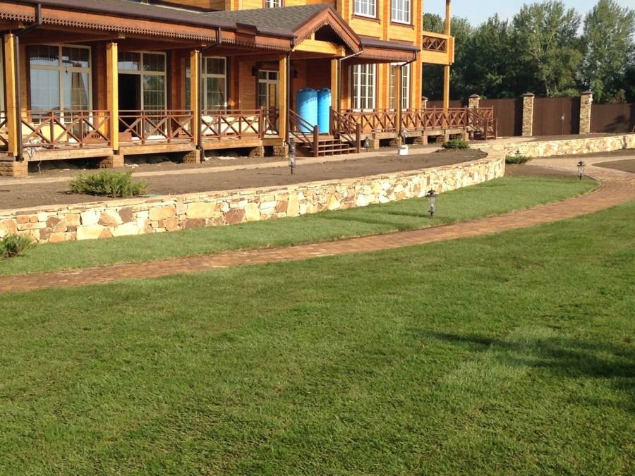 В заключение темы несколько слов о следующем после посадки уходе за зеленым покрытием. Первую неделю, в момент интенсивной приживаемости дерна, уложенный газон нужно поливать ежедневно и делать это необходимо обильно. Спустя этот период времени, когда трава несколько укоренится, можно переходить к нормальному графику полива – в зависимости от погоды на улице, газон поливают с промежутком в один-два дня. Самым лучшим временем для полива любых культурных растений является раннее утро или поздний вечер (до или после жары). В процессе орошения нужно следить за тем, чтобы вода покрывала всю площадь газона – если останутся обделенные водой участки, то уже спустя несколько дней они начнут желтеть и засыхать