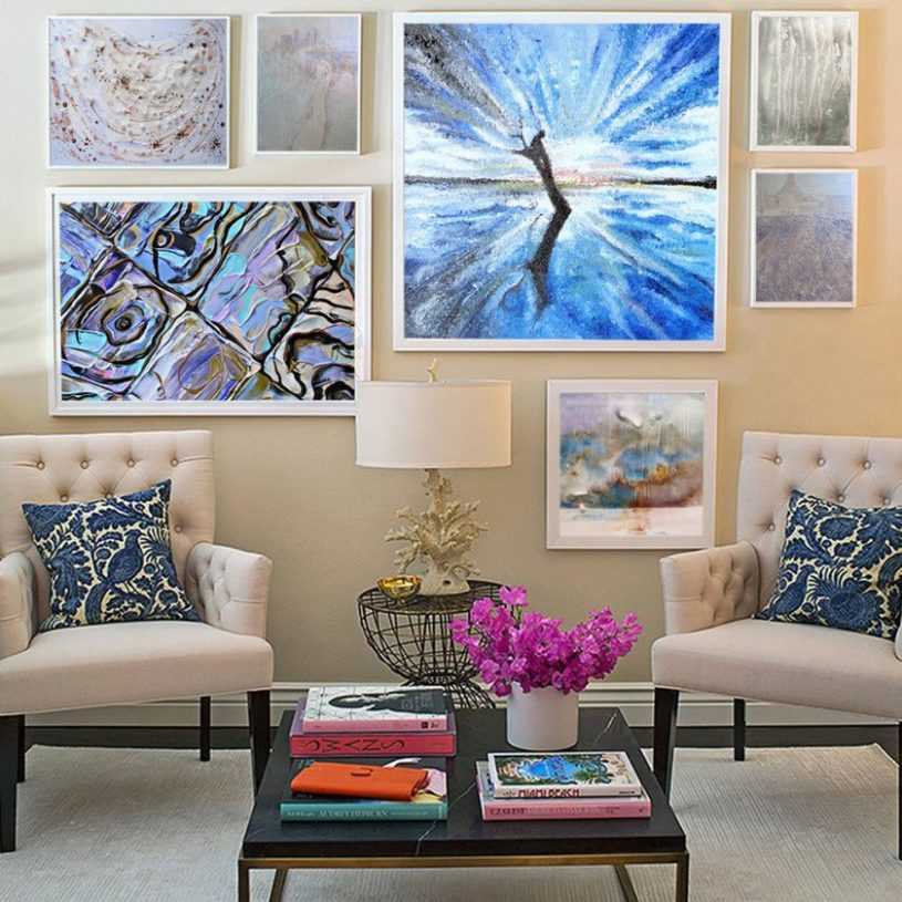 Для небольших помещений лучше использовать множество небольших и средних полотен. Такой прием освежает маленькие комнаты, но создает эффект захламленности в просторных.