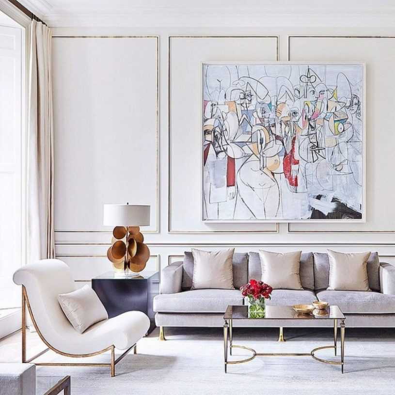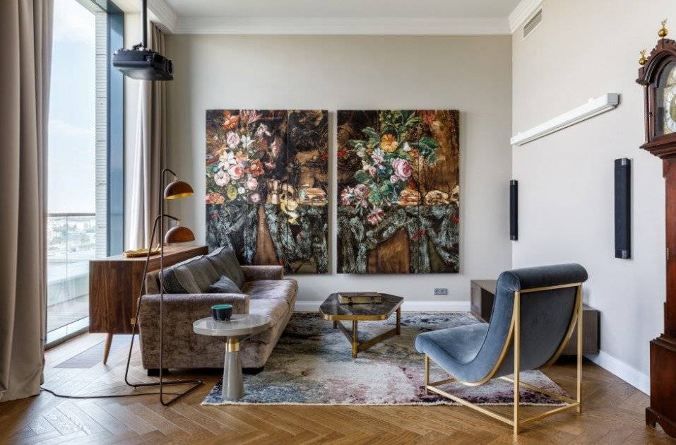 Если хочется ускорить ритм старой доброй гостиной, то на типовую живопись, оформленную в рамки, сразу стоит махнуть рукой.