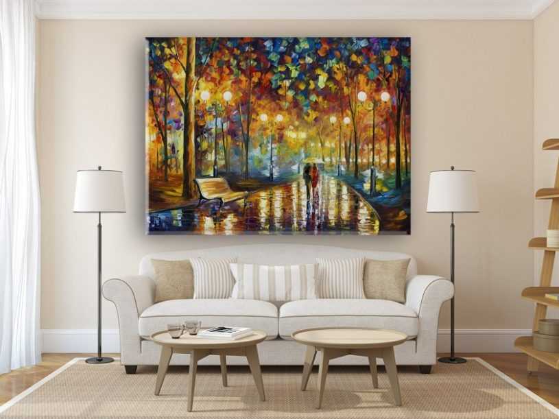 Немаловажный фактор при подборе красивой картины для интерьера – ее размер. Даже самый талантливо написанный сюжет может потеряться или же испортить впечатление от дизайна жилья.