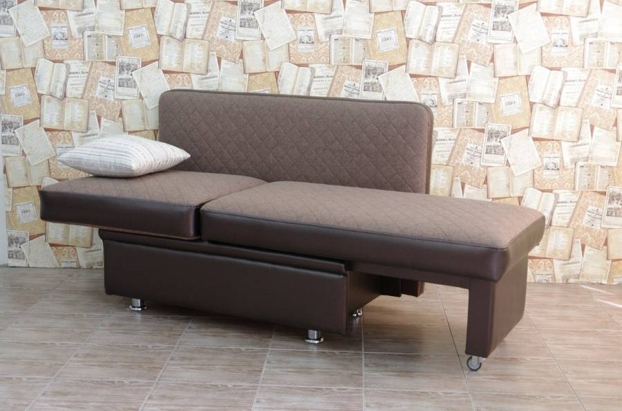«Французская раскладушка» и «Седафлекс» — такие диваны часто имеют красивые нарядные спинки, так как при трансформации они остаются неподвижны, а матрасы раскладываются по принципу раскладушки. Они подходят для маленьких кухонь, так как в собранном виде занимают очень мало места. Из этих двух видов «Седафлекс» больше подходит для регулярного пользования, но и стоит дороже. Французские раскладушки сгодятся только для гостевого пользования.