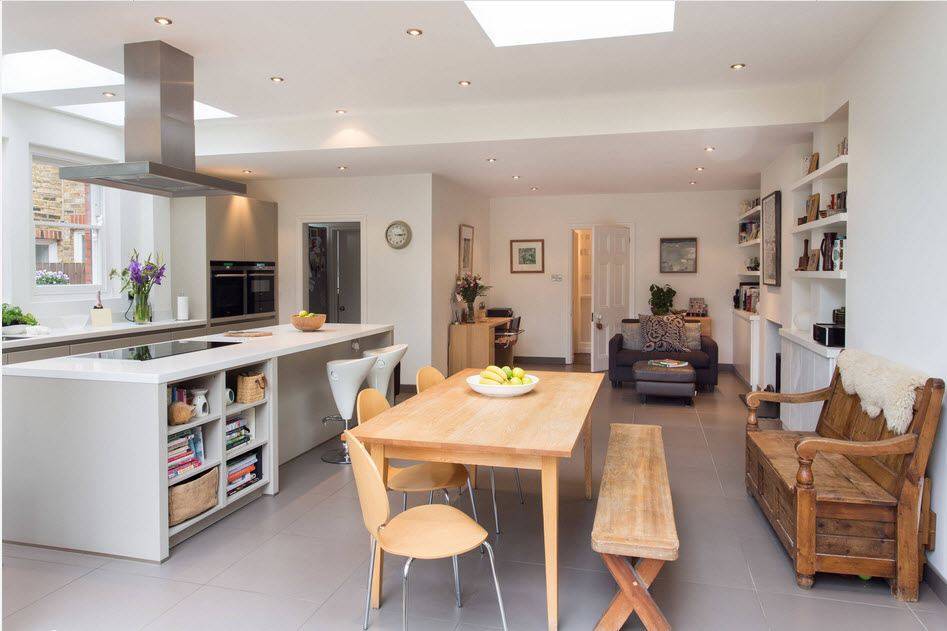 Данные конструкции в зависимости от габаритов могут удобно расположиться, как в небольшой кухне, так и стать центральным элементом в просторной кухне-гостиной, выполняя роль разделителя пространства.