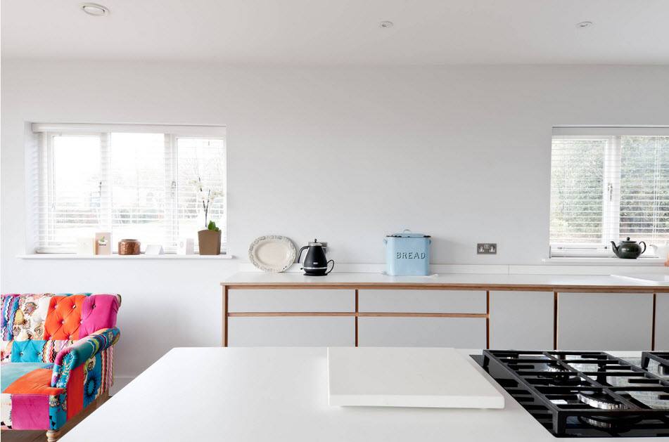 - Интерьер кухни с диваном отличается эксклюзивностью. Каким бы серийным не был кухонный гарнитур, мягкая мебель сделает дизайн интерьера нестандартным и авторским произведением.
