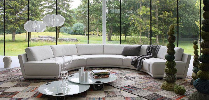 Полукруглые диваны иметь много преимуществ. Их можно расположить даже в гостиной с небольшой площадью. Диван этого вида идеально подойдет для заполнения эркерного пространства в гостиной. Обставить комнату можно по-разному. Сегодня в моде круглые и полукруглые диваны. Диван может быть кожаный, а может сочетать в себе несколько вариантов обивки.