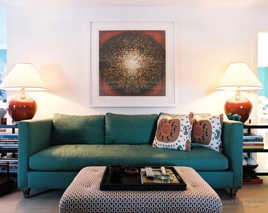 Если планируется установка дивана в центре комнаты, нужно при покупке обязательно обратить внимание на его заднюю стенку — она должна быть эстетичной;