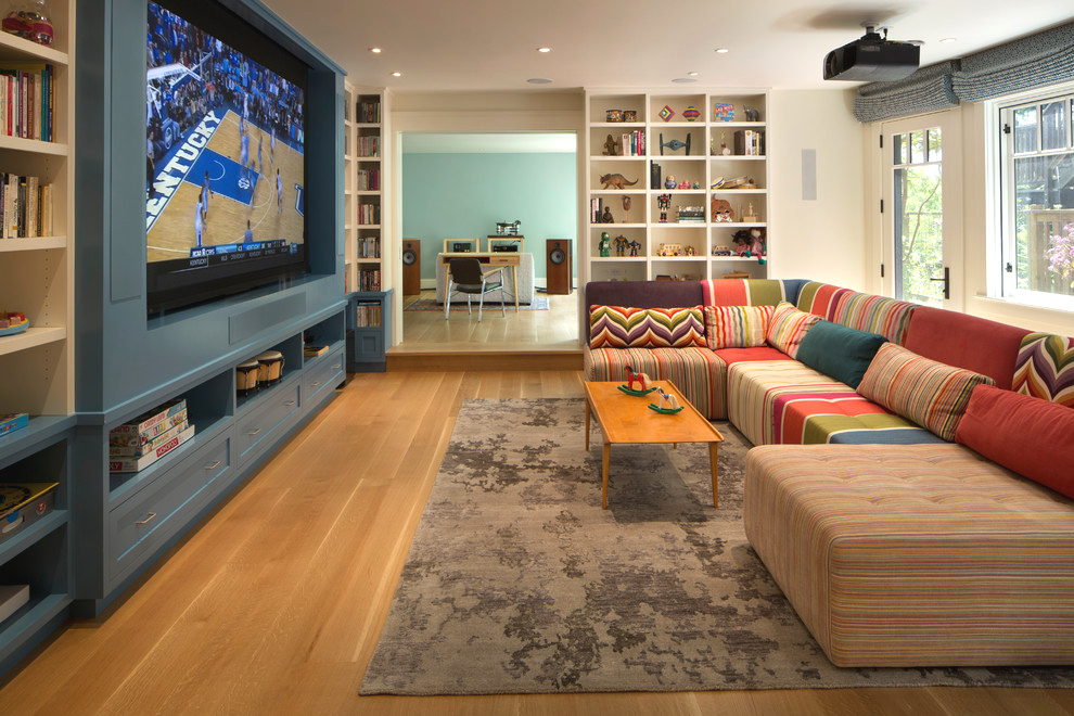 Оригинальное и очень смелое решение сочетания цветов в дизайне угловой стенки