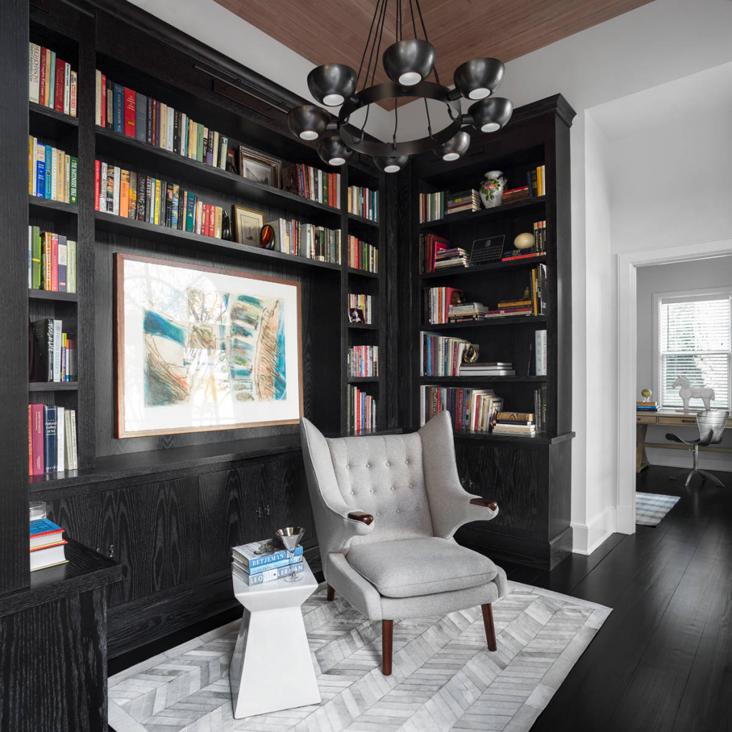 В данной стилистике допускается применение мебели с некоторой потертостью и эффектом старины, способствующей созданию атмосферы чердачного помещения. В качестве материалов используют стекло, дерево, металл, пластик, цветовую гамму выдерживают в более темных, приглушенных серых, коричневых, кирпичных или черных тонах.