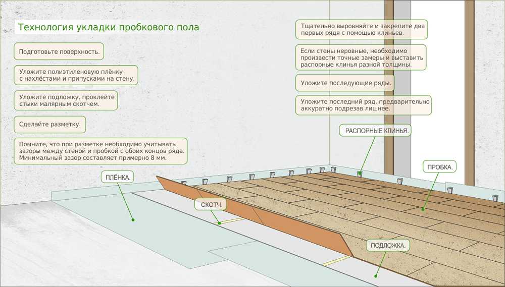 Основа под пробковый пол должна быть ровной, сухой, чистой и прочной: