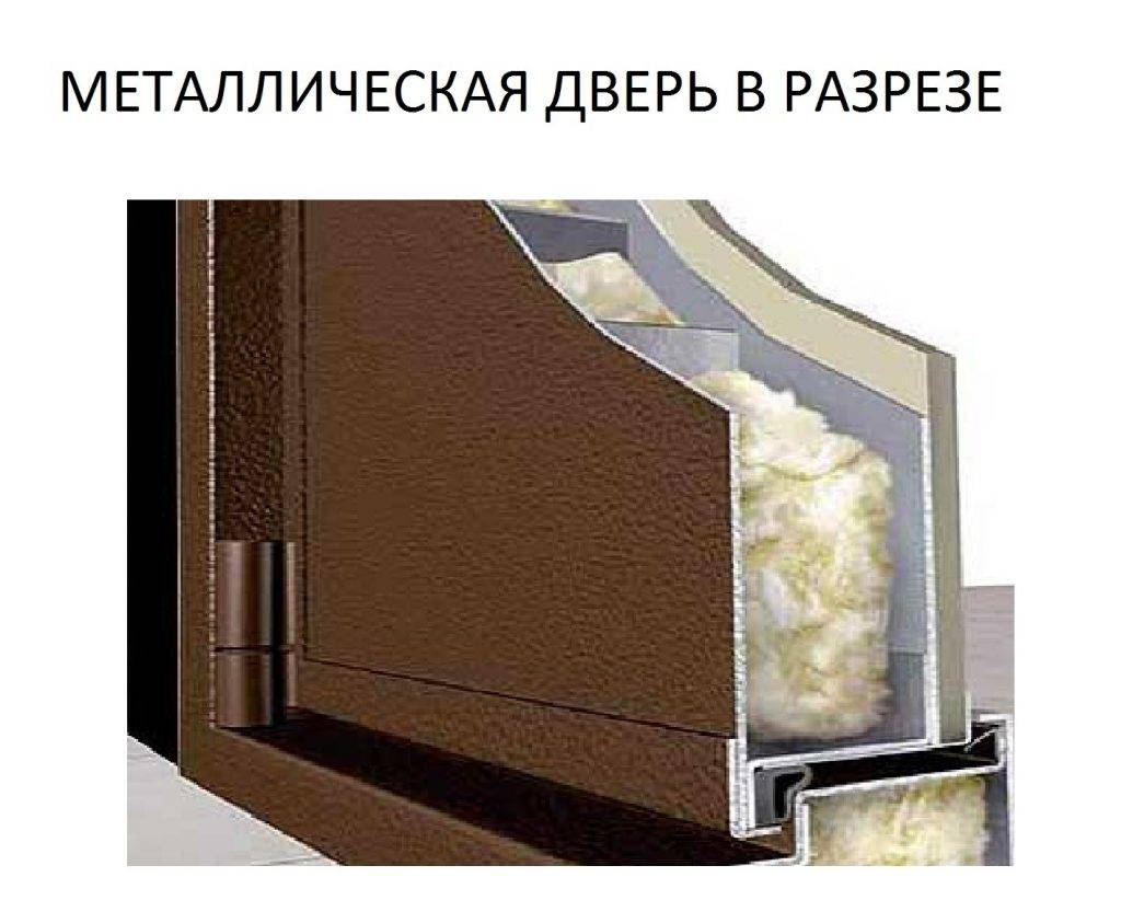 - Металлические дверные полотна с терморазрывом заполняются также минватой с пенопластом – эти материалы зарекомендовали себя с хорошей стороны. Уличные перепады температуры никак не смогут повлиять на микроклимат в доме вплоть до значений в -25 °С.
