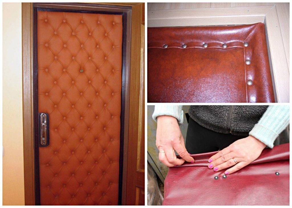 Для деревянной двери процедура представляет собой покрытие с обеих сторон утеплителем и обивку кожей или искусственным материалом. Поролон приклеивают к поверхности или фиксируют саморезами.
