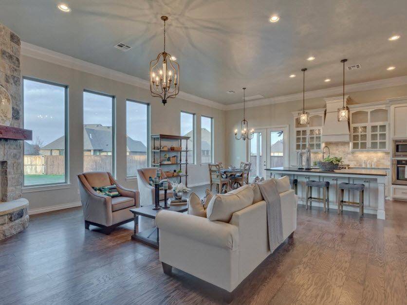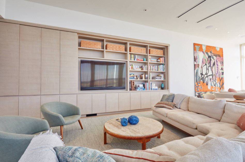 Гостиная в пастельных тонах – универсальное решение для реализации проекта в любом стиле. Такая гамма отличается особо светлым спектром, практически незаметной эмоциональной окраской, возможностью комбинирования с любыми другими яркими акцентами. Лучшие оттенки в это диапазоне — это, конечно, бежевый, молочный, кремовый, пудровый, серо-бежевый. Реже в оформлении используются пастельные желтый, зеленый, голубой. Они более окрашены эмоционально, поэтому их выбирать тогда, когда хозяева уверены в том, какое настроение хотят для интерьера своей гостиной, пусть и в пастельных тонах.