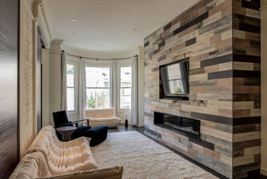 - Три стены — гладкими обоями и одну вариантом с крупной фактурой. В этом случае гарантировано разнообразие, и фактурные варианты становятся дополнительным украшением комнаты.