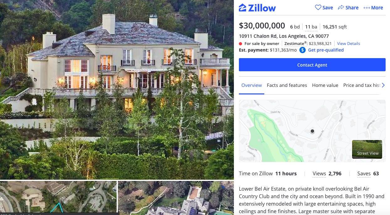 Стоимость этого дворца — 100 млн. долларов. Эта сделка по продаже дома была одной из самых крупных среди других продаж недвижимости в США. Однако позже Мильнеру сообщили, что за дом он заплатил слишком много.