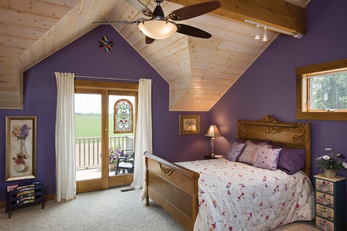 Если дом имеет мансарду, то ее наклонные стены оклеивают обоями, а потолок обшивают вагонкой неброских цветов, чтобы дополнительно не загружать комнату.