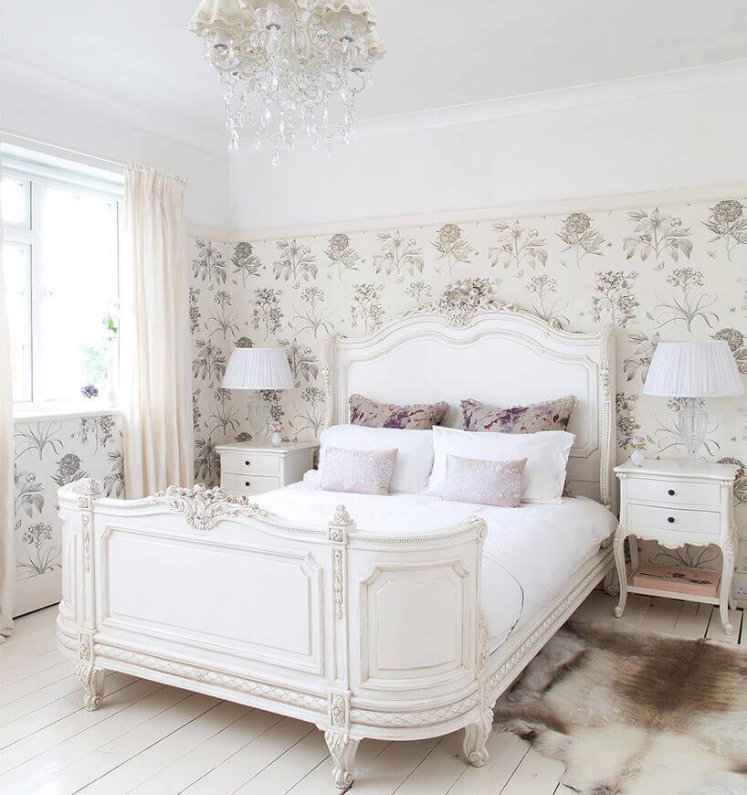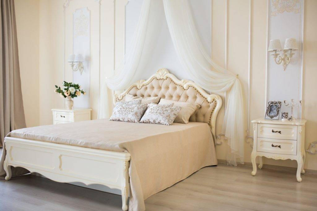 Вы можете применять правила французского стиля в спальне. Самая важная вещь в этой комнате — кровать. Обратите особое внимание на модели со стегаными подголовниками. Модель с блестящей рамой — золотой или серебряный — тоже подойдет