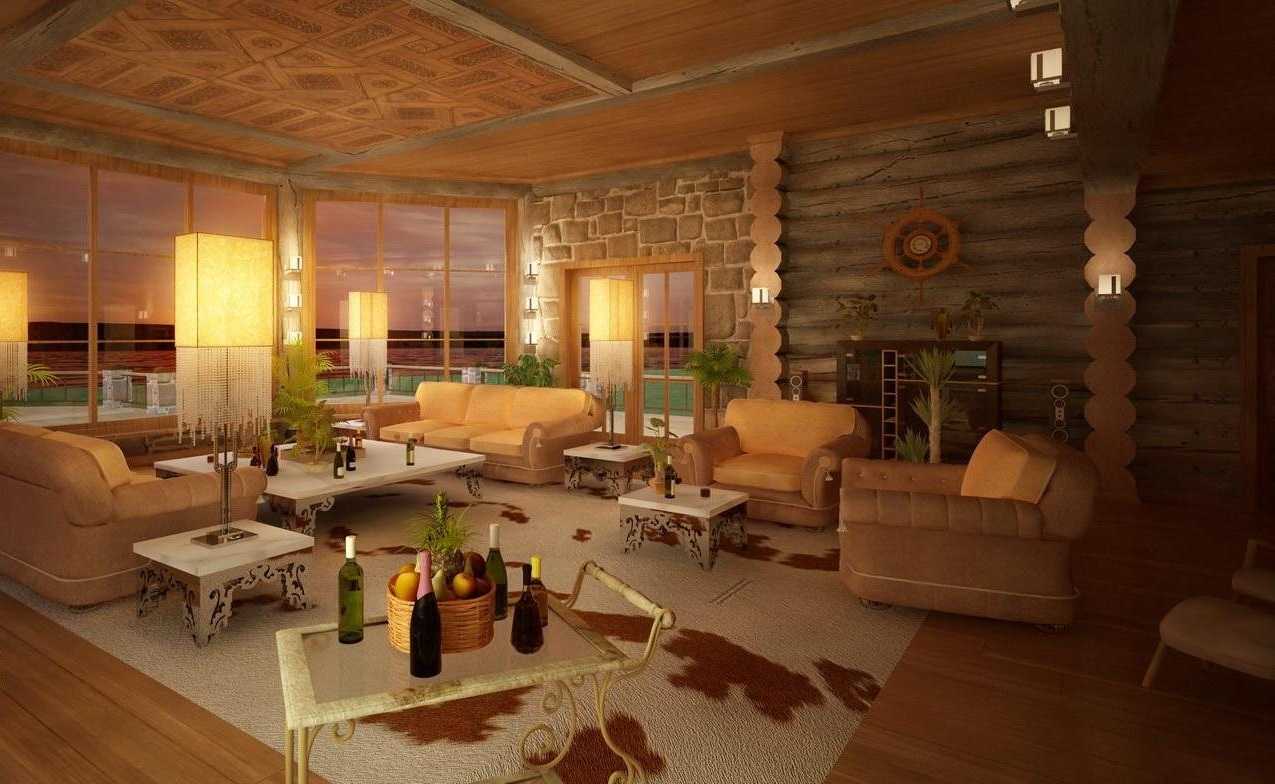 Подобная стилистика требует минимальной отделки. Дополнить общую композицию позволит печка с изразцами или изящной росписью. Поверхность стен может быть грубо обтесанной, отшлифованной и лакированной. Мебель в русском стиле имеет простые формы. В интерьере присутствует такие этнические направления как гжель или хохлома.