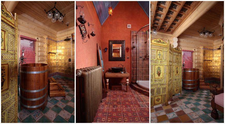 Любое повышение влажности влияет на древесину, поэтому в санузлах важно обеспечить хорошую гидро- и пароизоляцию. Действовать в деревянном доме по аналогии с обычной городской квартирой неправильно
