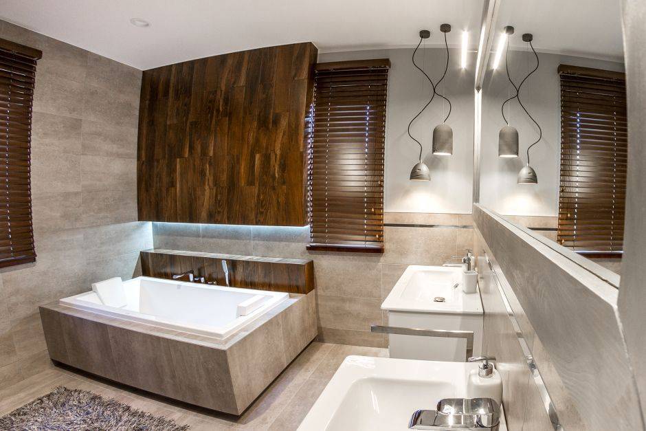 Современный дизайн ванной комнаты в частном доме