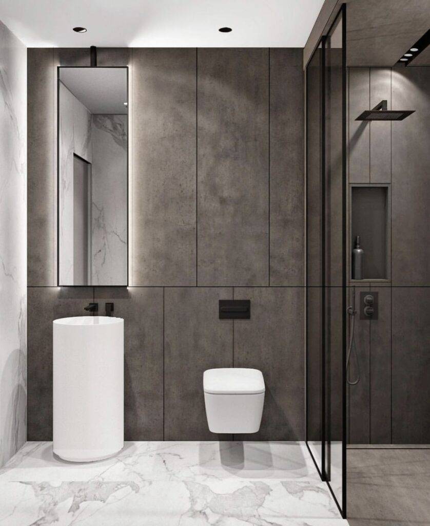 Дизайнерские идеи для ванной и туалета хай-тек